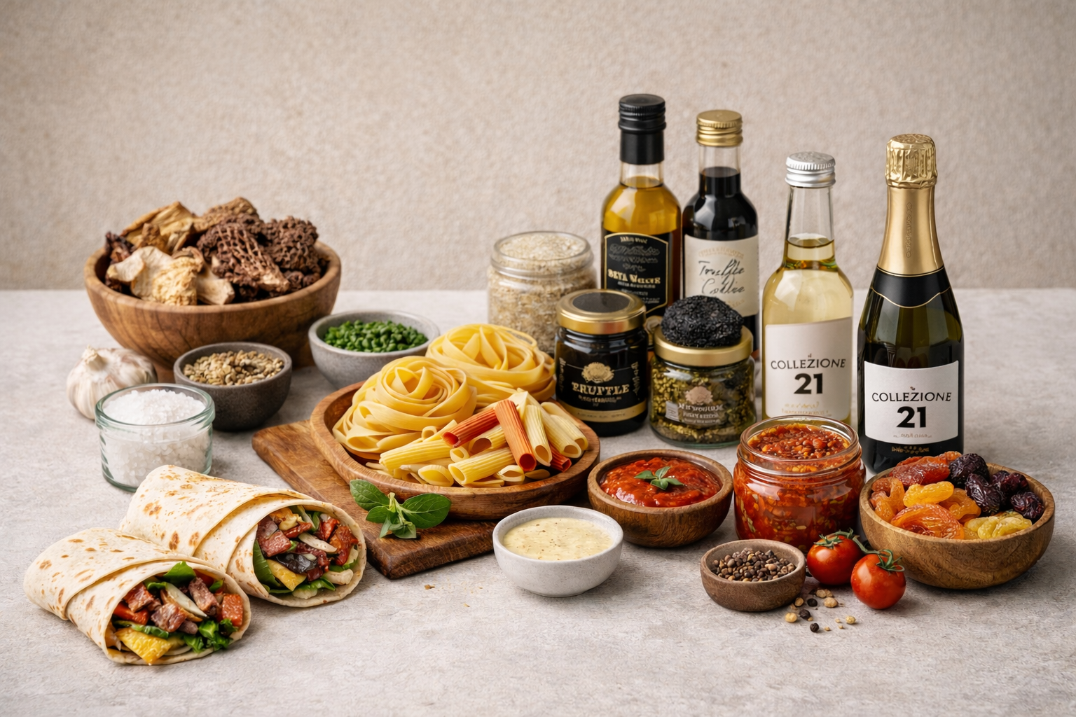 Εξαιρετικό ελαιόλαδο τρούφας, μπαχαρικά τρούφας, πάστα μαύρης και λευκής τρούφας – για όσους θέλουν να δώσουν signature χαρακτήρα στα πιάτα τους. Μερικές σταγόνες ή μια κουταλιά αρκούν για να μετατρέψουν ένα απλό πιάτο σε εμπειρία.
